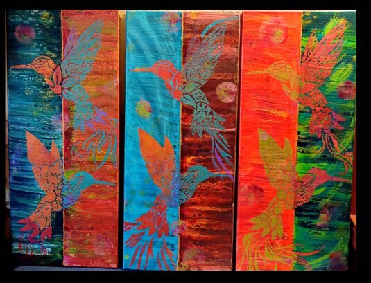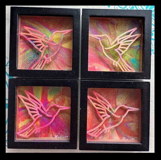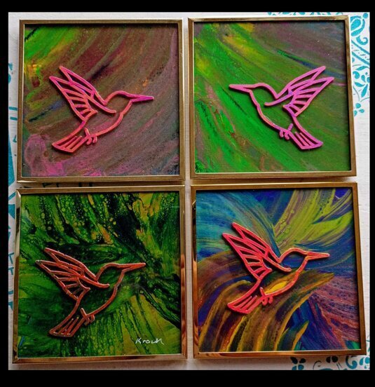 Vögel sind ein Symbol für Freiheit, manche auch für Frieden. Sie können ganz so, wie die Schmetterlinge, aufsteigen in den Himmel und fliegen. Einige Bilder tragen Vogel-Federn mit kunstvollen Strukturen, ein Highlight sind stets die Pfauenaugen.